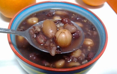 原料:红豆、江豆、黑米、糙米、花生、红莲子、荞麦仁、糖。