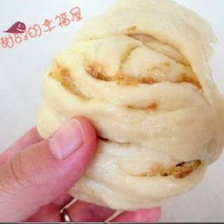 原料:腌制的鸡腿肉、虾皮、面粉、酵母、温水、油。