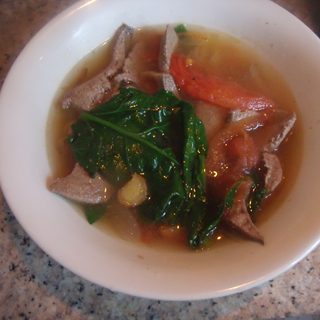 原料:猪肝、水、西红柿、菠菜、油、盐、葱、姜。