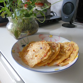 原料:面粉、鸡蛋、火腿、洋葱、辣白菜、盐。