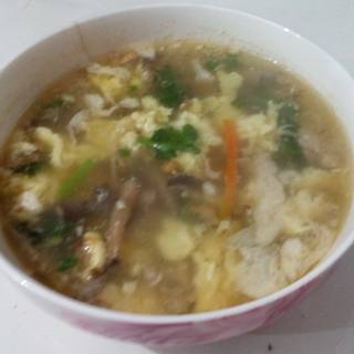 原料:蘑菇、鸡蛋、红辣椒、香菜、盐、花生油、香油。