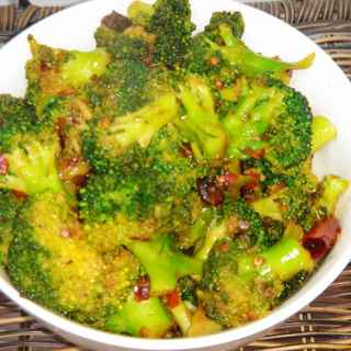 原料:西兰花、辣椒酱、食用油、盐、鸡精。