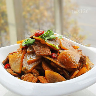 原料:萝卜、葱、辣椒、猪肉、香菜、油、盐、酱油、花椒、味精。