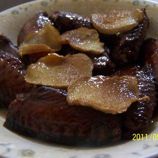 原料:鸡翅中、老抽、料酒、盐、蜂蜜、姜。