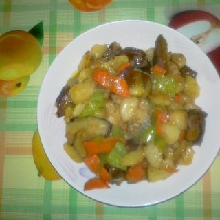 原料:土豆、茄子、辣椒、葱、姜、蒜、十三香、酱油、白砂糖、盐、淀粉、花生油。