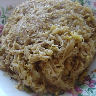 原料:酸菜、猪里脊、葱、姜粉、蒜、胡椒粉、盐、醋、白糖、味精、花生油。