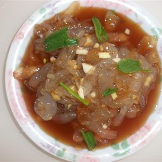 原料:蛰皮、糖、生姜、蒜头、醋、酱油。