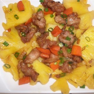 原料:佛手瓜、黄椒、肉片、油、盐、鸡精。