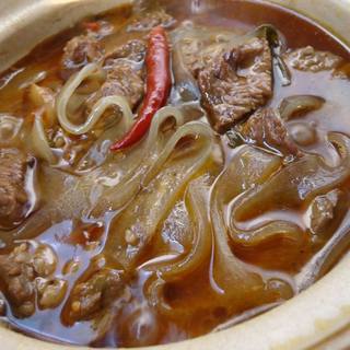 原料:牛肉、粉条、红尖椒、姜、葱、辣油。