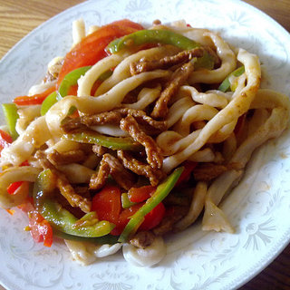 原料:面粉、牛肉、青椒、红椒、番茄。