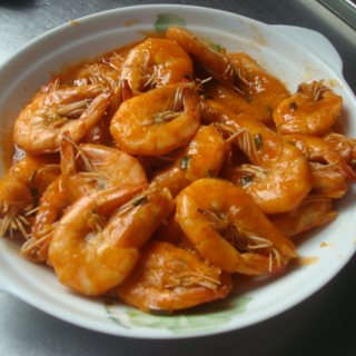 原料:虾、葱、韩国辣酱、糖、盐、料酒。