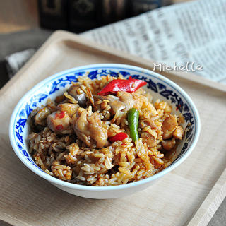 原料:剩米饭、鸡腿肉、番茄、长茄、青红尖椒、蒜蓉辣酱、料酒、麻辣鲜、白酒、白糖、酱油、盐、鸡精。