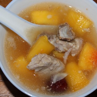 原料:木瓜、排骨、小红枣、老姜片、西洋参、食用盐。