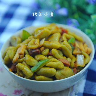 原料:豆角、面条、盐、生抽、老抽、五香粉、香油、姜粉、葱、蒜、干辣椒。