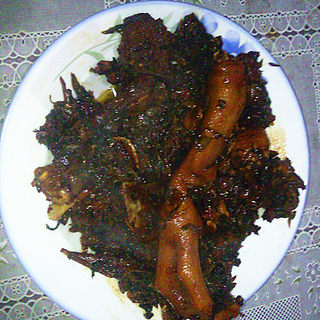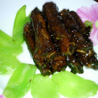 原料:家养鹅肉、花椒、咸菜、辣椒、姜丝、大蒜。