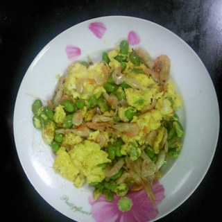 原料:绿壳鸡蛋、毛豆、虾干、盐、味精、香油。