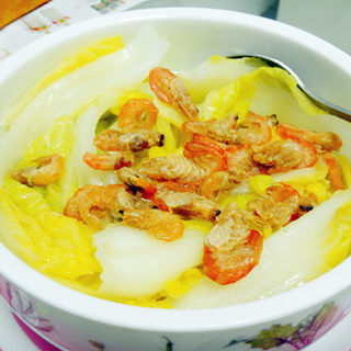 原料:娃娃菜、虾米、盐、鸡粉、油、生粉水。