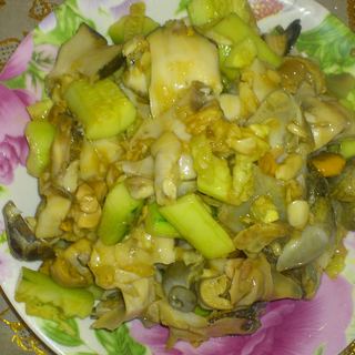 原料:海螺、黄瓜、大蒜、盐、蚝油、味精、醋。