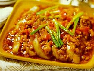 原料:肉泥、香葱、茄子、生姜、花生油。