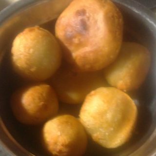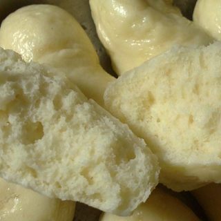 原料:糯米粉、粘米粉、南瓜、牛奶、生粉、糖。