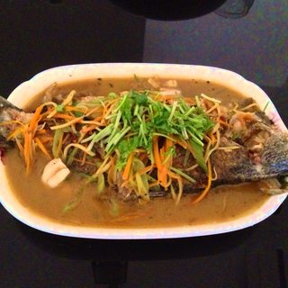 原料:金目鲈、青红辣椒丝、葱姜丝、大蒜瓣。