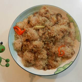 原料:猪肉、红糟、酱油、白糖、蒜、地瓜粉。