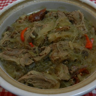 原料:烤鸭、洋葱、红辣椒、白萝卜、姜、酱油、胡椒粉。