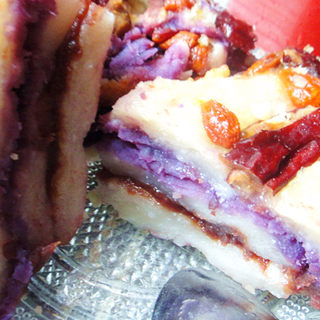 原料:糯米粉、南瓜、紫薯、红豆沙、芝麻、红枣、枸杞、花生碎。