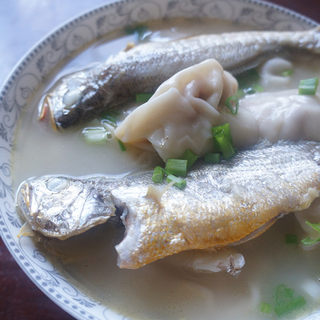 原料:小黄鱼、水饺皮、猪肉、娃娃菜。