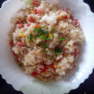 原料:米饭、胡萝卜、鸡蛋、马可波罗肠、盐、味精、鸡精、料酒、大喜大牛肉粉。
