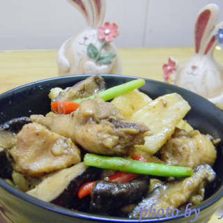 原料:走地鸡、山药、香菇、姜 葱 蒜、小辣椒、盐、鸡精、五香粉、生抽。