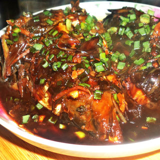 原料:草鱼鱼头、蒜、生姜、葱、盐、油、料酒、陈醋、老抽、糖、淀粉。