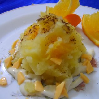 原料:土豆、橙子、芝士、黑胡椒、沙拉酱。