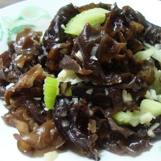 原料:木耳、大蒜、西芹、盐、鸡精、油。