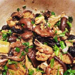 原料:土鸡、腊雀、香茹、木耳、姜、葱、香菜、沙姜、花生油、盐、鲍鱼汁、酱油、糖、白酒。