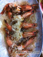 原料:新虾、粉丝、蒜头、小葱、椒盐、油。