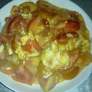 原料:鸡蛋、西红柿、白糖、盐、生抽、生粉。