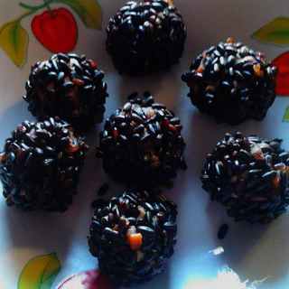 原料:肉、血糯米、胡萝卜、香菇、红辣椒、盐、胡椒粉、姜。