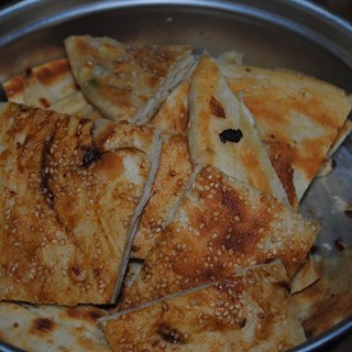 原料:面粉、葱花、芝麻、黄豆酱、盐、花生油。