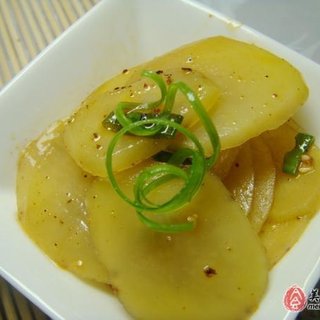 原料:土豆、小葱、盐、白糖、生抽、米醋、辣椒油。