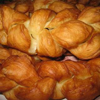 原料:普通粉、荤油、黑豆馅、蛋液。