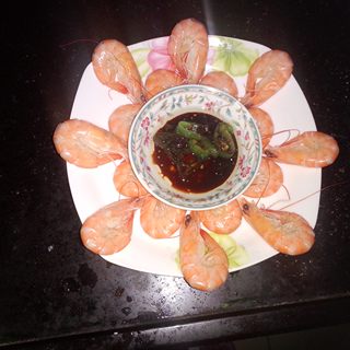 原料:虾、青椒、花生油、酱油。