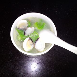 原料:白贝、丝瓜、姜、盐、花生油、胡椒粉、香油。