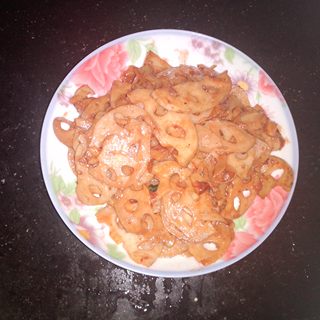 原料:莲藕、蒜头、南乳、油、盐。