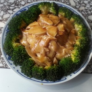 原料:白灵菇、西兰花、鲍汁、蒸鱼豉油、蚝油、六月鲜酱油、鸡精、玉米淀粉。