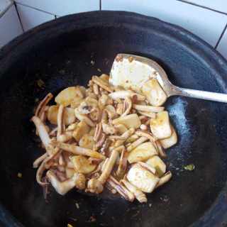 原料:籽兔、豆腐、生姜碎、豆瓣酱、冰糖、油、料酒。