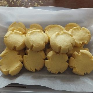 原料:低筋面粉、玉米粉、黄油、熟鸡蛋黄、白砂糖、盐。