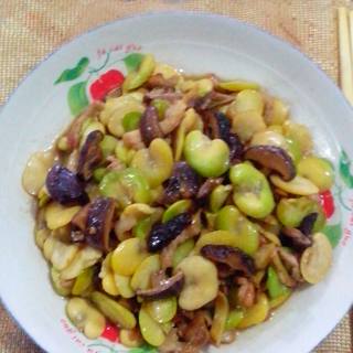 原料:蚕豆、香菇、猪肉、盐、白糖、料酒。