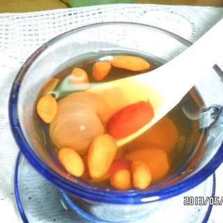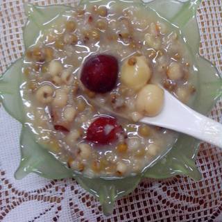 原料:绿豆、薏米、莲子、红枣、红糖。
