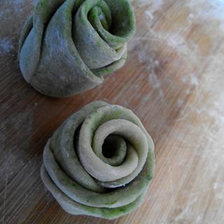 原料:面粉、菠菜、酵母、白糖、盐。